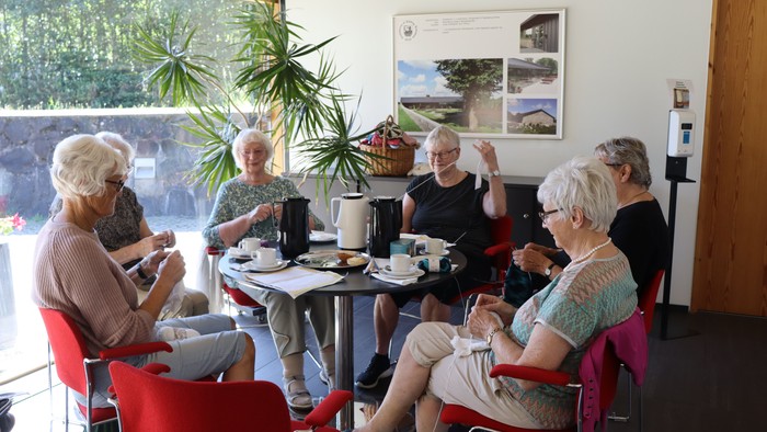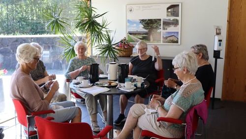Velmødt til hyggelig snak, mens der strikkes dåbsklude.